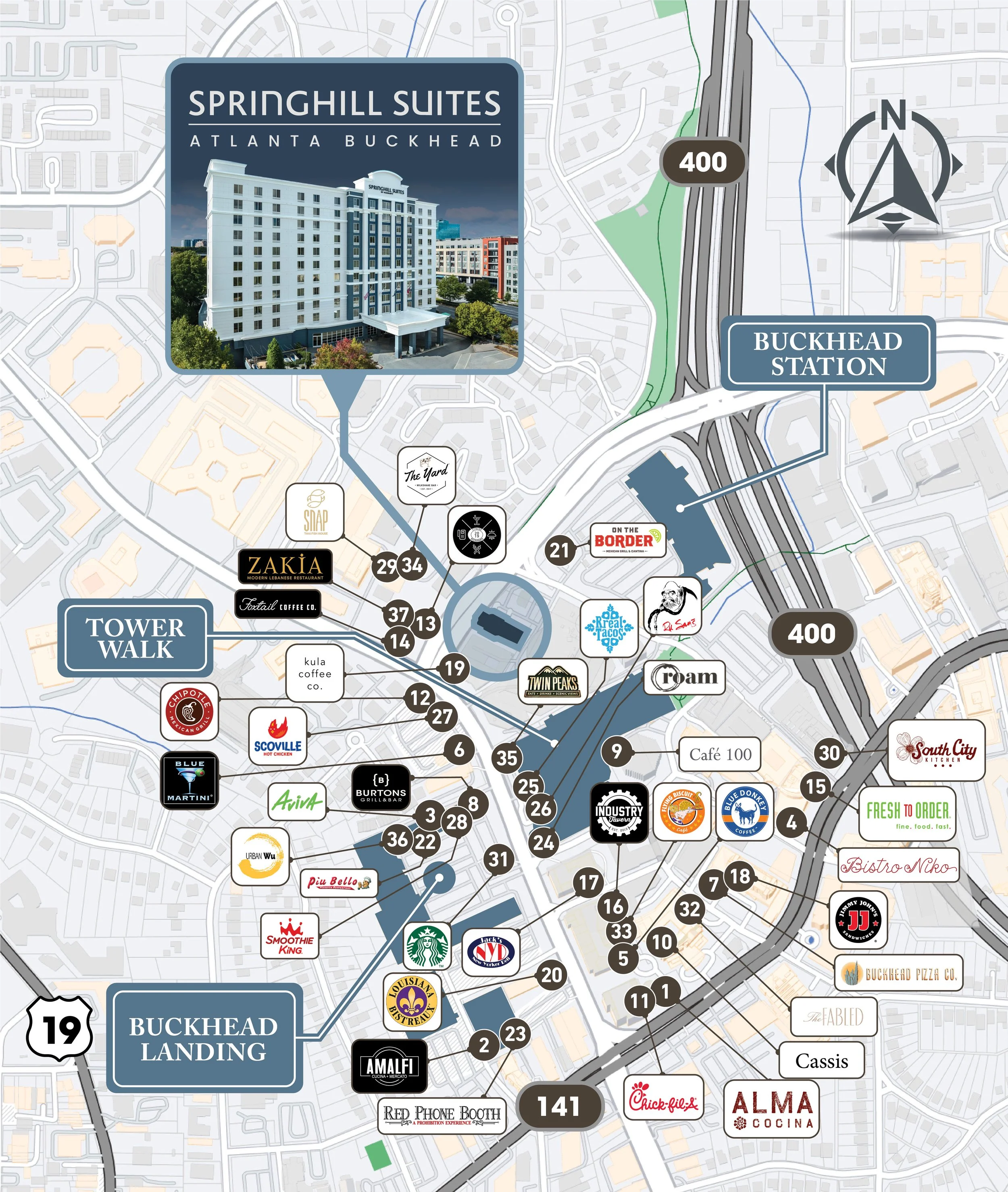 Buckhead has long been home to some of Atlanta’s best restaurants, and the area immediately surrounding the SpringHill has transformed in recent years into a highly walkable food and beverage destination. Buoyed by the recent and future openings of the Prominence and Buckhead Landing mixed-use developments, respectively, SpringHill guests now have access to a multitude of popular restaurant options ranging from fine dining to sports bars to fast-casual that they did not have previously.